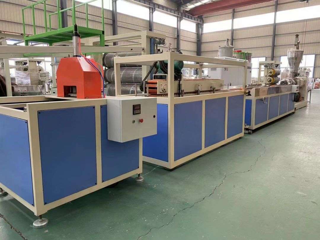 Garis produksi profil nggunakake ekstrumer twsz-65/132 seri ekstruser conical, platform baja stainless staping, platform sing bisa digunakake, lan nglereni mesin terintegrasi kanthi otomatis, lan flipping rak mbuwang. Platform sing bisa dilengkapi karo pompa vakum tekanan tinggi lan pompa banyu, sing bisa luwes papat dimensi. Traktor kasebut digawe kanthi tenggorokan. Mesin pemotong dawa otomatis nggunakake saklar lelungan kanggo dipotong kanthi dawa. Rak tumpukan wis dawa 6 meter, digawe saka stainless steel, lan nyemprotake kanthi pneumatik.
