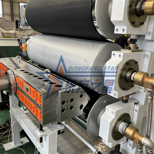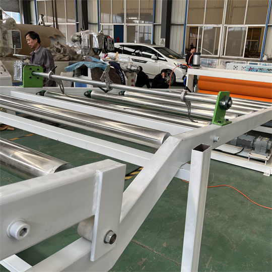 Peralatan Perangkat Lunak PVC: Peralatan utamane dumadi saka ekstrum ekstrum meneng 120, kalender telung roller, mesin penyembuhan roller, mesin sing nyukur, lan