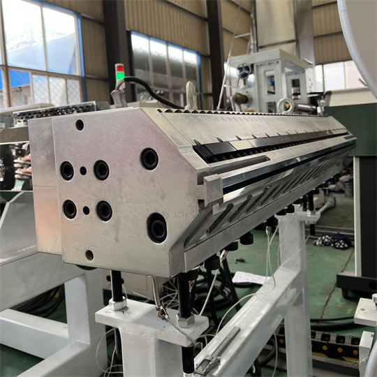Peralatan Dewan anti-statis PVC: Peralatan utamane dumadi saka ekstrum mentrem 120-roller, kalender telung roller, mesin penyayang roller, mesin conveyor, lan piranti sabuk conveyor. Jembarane standar produk peralatan turu panel PVC yaiku 1000mm. Ketebalan kasebut yaiku 6mm. Peralatan papan antisatik ekstruder PVC bisa ngasilake macem-macem tekstur kayata pola kura, pola kulit oranye, lan pola dicenthang. Peralatan Turtle PVC bisa diproses lan disesuaikan miturut syarat pelanggan.