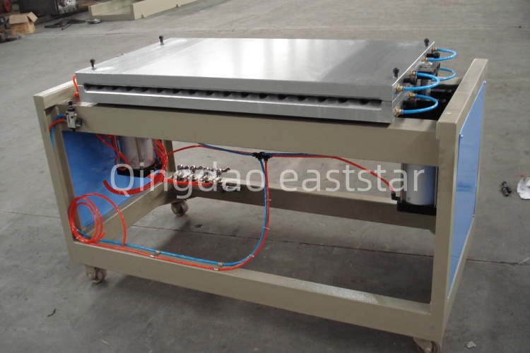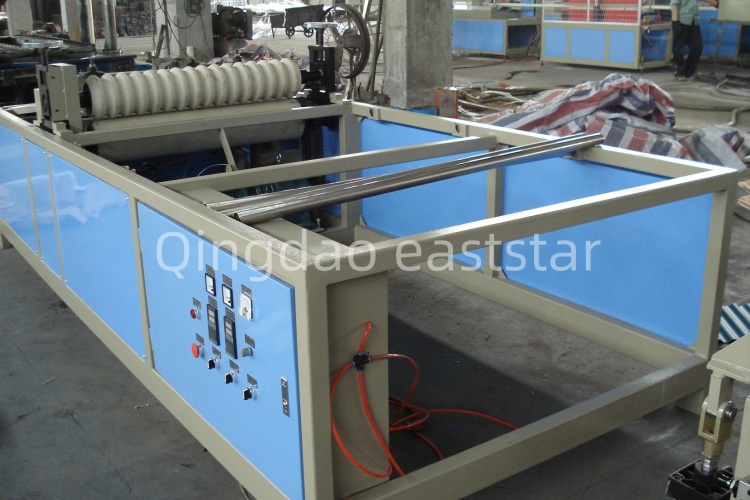Die wangun dawa 800mm, digabungake karo adsorpsi vakum lan sistem pendinginan banyu, njamin struktur gelombang sing tepat lan pendinginan seragam. Sistem traksi nggunakake rol karet styrene-butadiena, nyedhiyakake gaya traksi maksimal 20KN, njamin prodhuk ora deform utawa babagan sajrone traksi.
