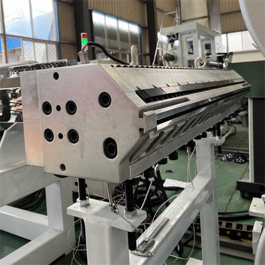 Extruder sheet mati Struktur: Jenis Jenis Pelari, Mold Shaped T-Shaped Bahan: baja cetakan kualitas tinggi Saluran aliran batin cetakan yaiku krom sing dilapisi, lan ketebalan minimal lapisan plating krom yaiku 0,03-0,05mm. Digawe polesan menyang pangilon permukaan (cavity ra 0.1um, mati lambe ra 0.05um)