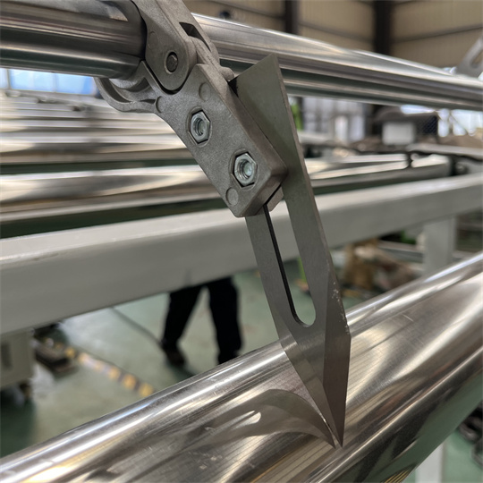 Mesin ekstrumasi pvc alus: peralatan utamane dumadi saka ekstrum mentrem 120-roller, kalender telung roller, mesin penyembuhan roller, mesin sing shearing, lan a
